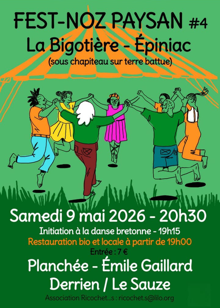 Réservez votre soirée ! 📍 Rendez-vous à La Bigotière – Epiniac 📅 Samedi 9 mai 2026 🕣 Fest-Noz à partir…