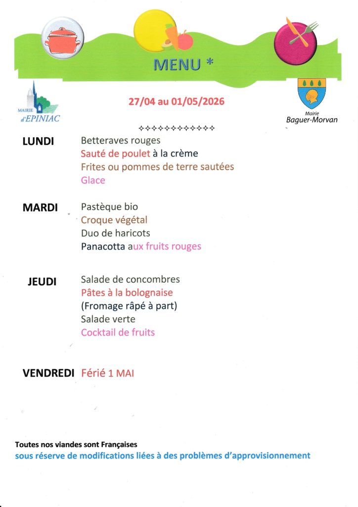 Dorénavant, un code couleur doit être appliqué sur les menus, correspondant aux familles d’aliments suivantes :